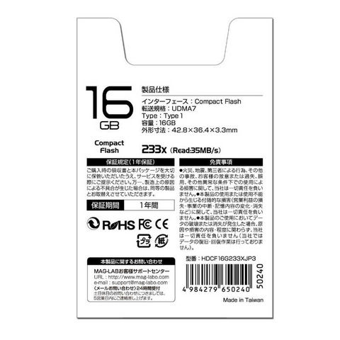 HIDISC コンパクトフラッシュカード 16GB MLCチップ搭載 HDCF16G233XJP3