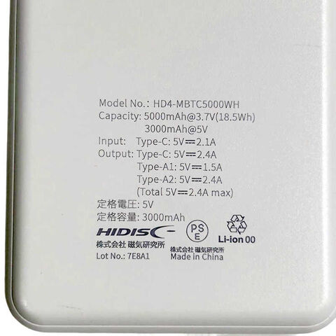 HIDISC 薄型軽量 5000mAh モバイルバッテリー [3ポート] ホワイト HD4-MBTC5000WH