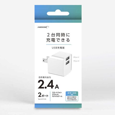 HIDISC 2台同時に充電できるUSB充電器 USB-A x2 ポート [2ポート] HD-AC2U12WH