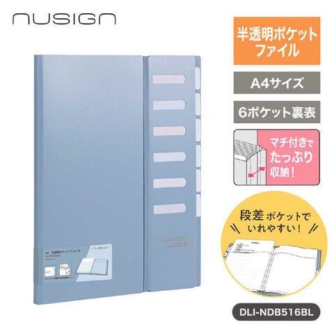 DELI 半透明ポケットファイル A4 6ポケット インデックス付き nusign(ニューサイン) 青 DLI-NDB516BL