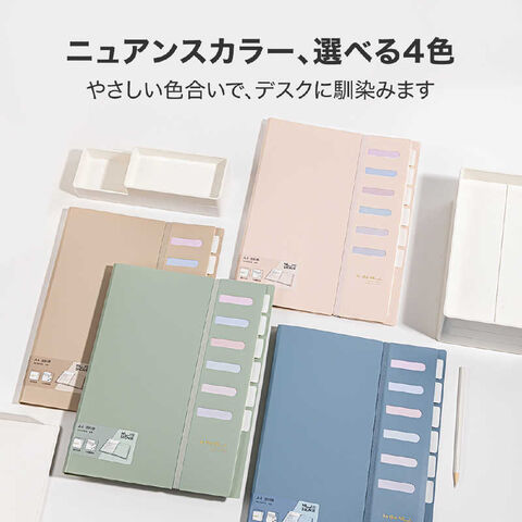 ストラップでページを固定し、補強ポケットで大切な書類も安心収納。