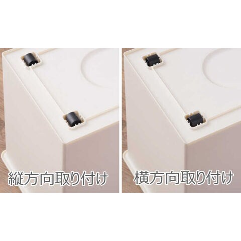 ●ミニキャスター/底面には『ミニキャスター』が付いているので、ゴミを出す時などコロコロと本体を動かすことができます。また、このミニキャスターは“縦方向”にも“横方向”にも取り付ける事が可能なので、置き場所に合わせて使いやすく変えることができて便利です。