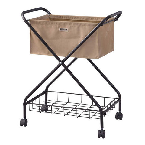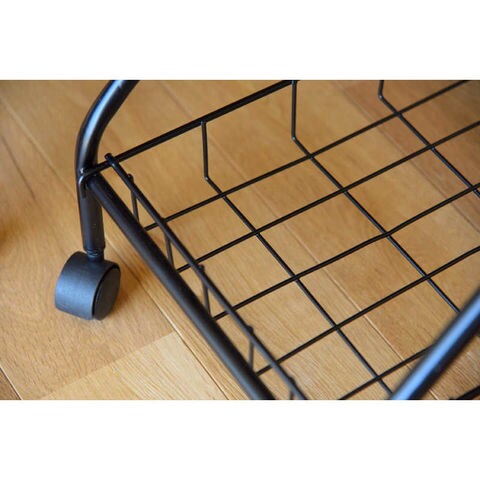 艶消し&ブラックカラーのクールなスチールと、ファブリックを組み合わせたバスケットワゴン。