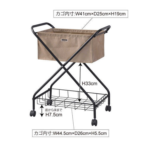 東谷 フォールディングバスケットワゴン(ベージュ/約W52.5×D35×H66cm)