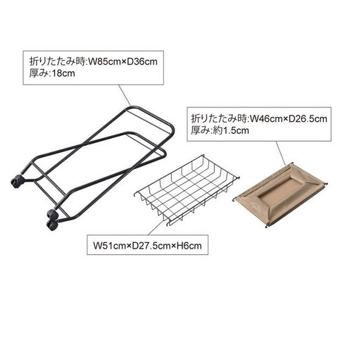 下段のメッシュ棚を外し、本体上部の取っ手を内側に閉じればコンパクトに折りたたみ可能。
