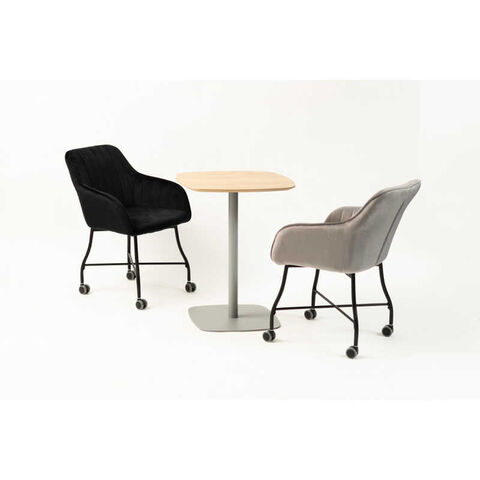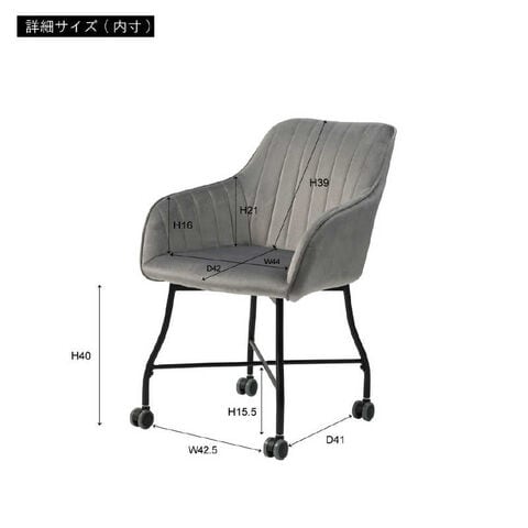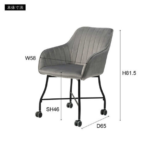 ベロアの上質な質感と脚のなめらかなカーブが美しいチェア。キャスター付きで着座、離席時の動きがスムーズ。