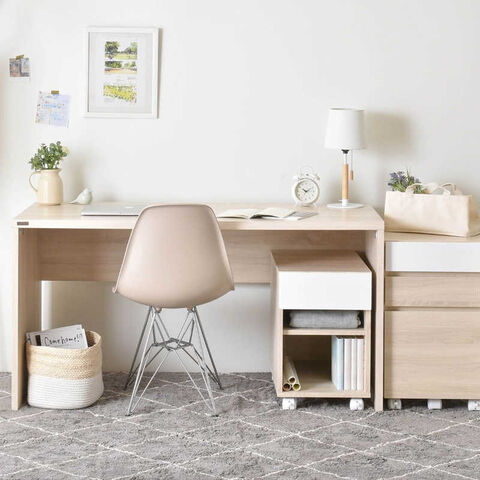 シンプルナチュラルなデスクとサイドチェストでワークスペースを自分らしくカスタマイズ。