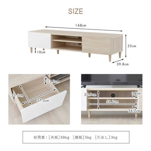 テレビの薄型化や大型化に合わせて、少し低めのサイズに設計し、大き目のテレビを置いても自然な目線でテレビを視聴することができ、疲れにくいのも特徴です。