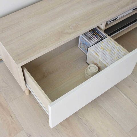 豊富な収納力の幅広引き出しや高さを調節できる棚空間などAV機器やテレビ周りの小物をひとまとめに収納できます。