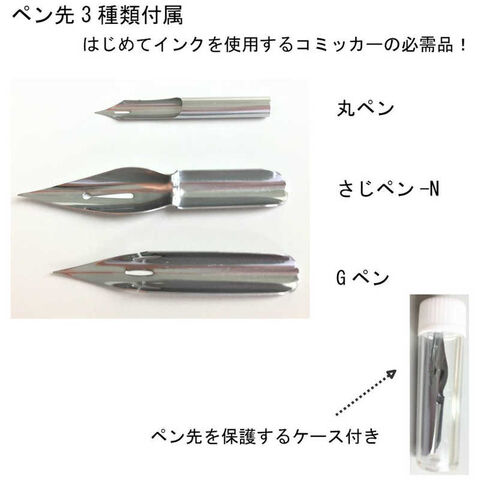 仕様1:ペン軸に、さじぺん-N、Gペン‐N、丸ペン、各ペン先1本ずつ付属