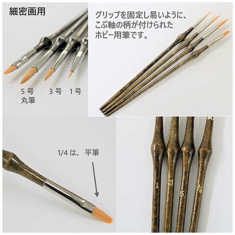 タケダ こぶ軸 丸 1 細密な着彩用筆、握りやすいグリップ(こぶ)付き