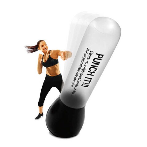 ・自宅で気軽にストレス発散と全身シェイプアップを楽しめる、空気注入式の自立型パンチングバッグ・1本で多彩なエクササイズ!自宅で気軽に全身シェイプできます!・強くたたいても手や足が痛くない空気注入式・吸水ポリマーで安定性が抜群、素早い起き上がりで連打もできます・ストレス発散や運動不足解消に最適。