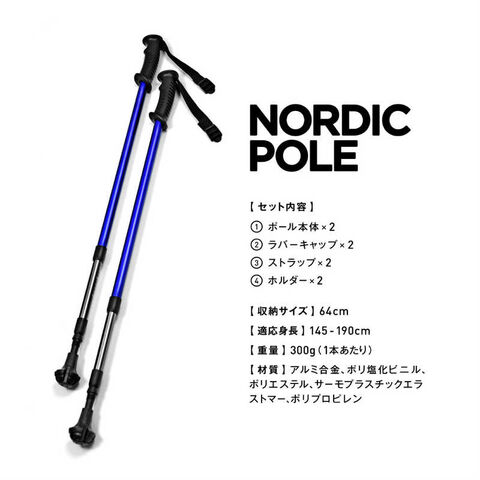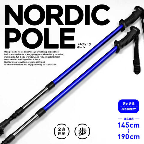 ・自身の身長から直ぐに適切な長さがセット出来る、伸縮調整式のノルディックポールです・身長と同じメモリに合わせるだけで、最適な長さに簡単セット・本のポールを交互に後ろへ押し出すようにして前進することにより大きな推進力を生み出します・足が軽く前に進み、運動効率が上がります【商品サイズ】