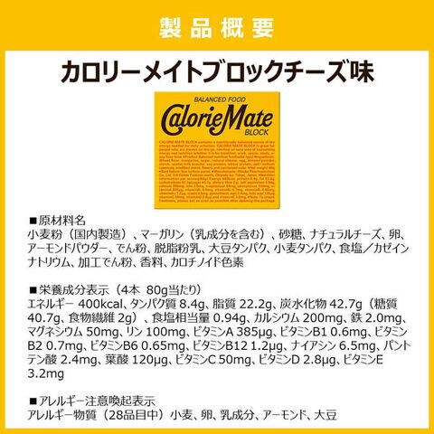 ●そこに栄養補給の見地から11種類のビタミン(1日必要量の1/2)・6種類のミネラル(1日必要量の1/3)などをバランスよく配合したのがブロック(4本入り)です。
