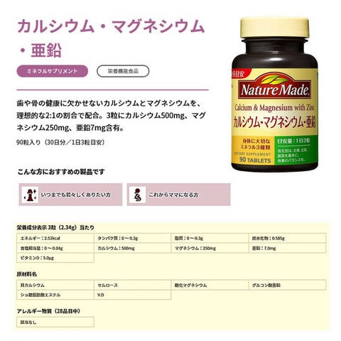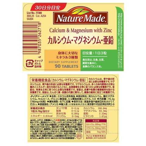 大塚製薬 NatureMade(ネイチャーメイド)カルシウム・マグネシウム・亜鉛(90粒)
