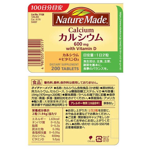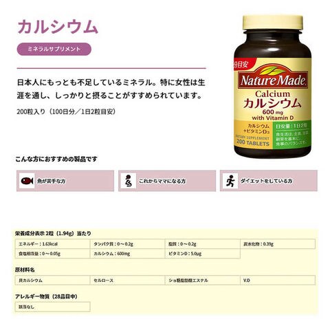 大塚製薬 NatureMade(ネイチャーメイド)カルシウム(200粒)