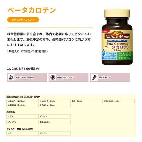 大塚製薬 NatureMade(ネイチャーメイド)ベータカロテン(140粒) のレビュー