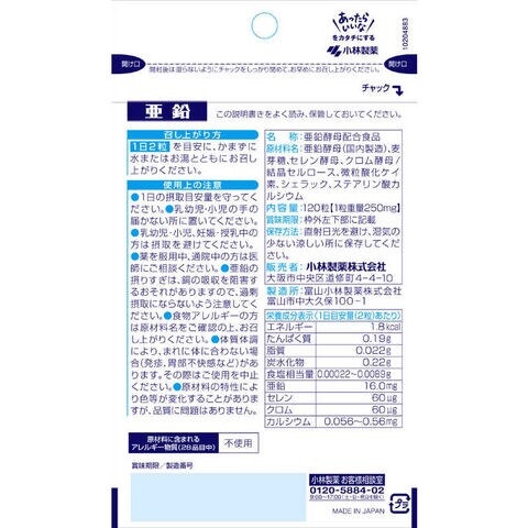 仕様1:原材料名:亜鉛酵母、麦芽糖、セレン酵母、クロム酵母/結晶セルロース、微粒酸化ケイ素、シェラック、ステアリン酸カルシウム