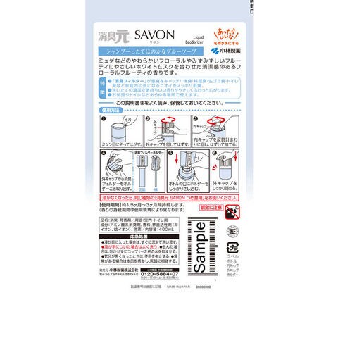 小林製薬 消臭元SAVON シャンプーしたてほのかなブルーソープ 400ml