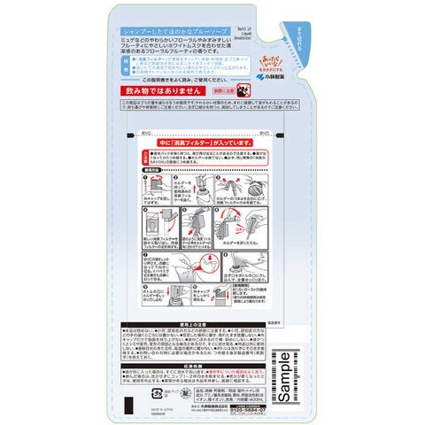 成分:アミノ酸系消臭剤、香料、界面活性剤(非イオン、陰イオン)、色素
