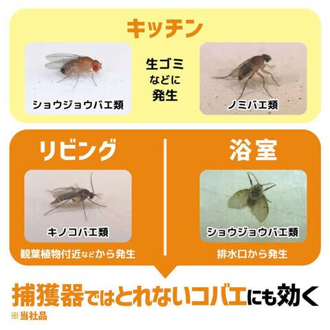 捕獲器ではとれない、チョウバエ、キノコバエにも効く!