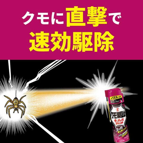 クモに直接スプレーすると、すぐれた速効性と殺虫効力を発揮。クモの卵も駆除できます