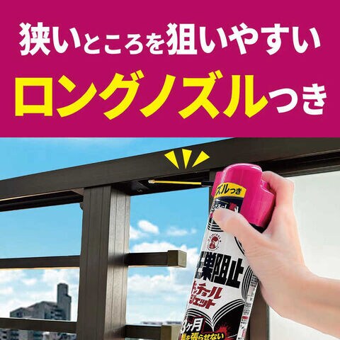 スプレーが届きにくい狭い所や、軒下や天井など手の届かない所にも処理しやすい設計です