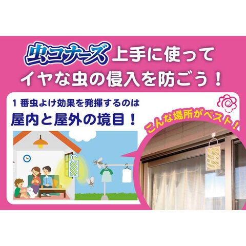 屋内と屋外の境目に吊るだけ。屋内へのイヤな虫の侵入を防ぐために。