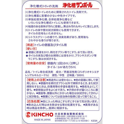 浄化槽式トイレの洗浄に適したトイレ用洗浄剤。
