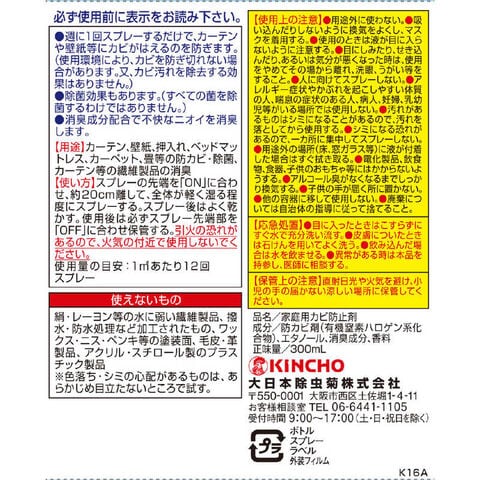 大日本除虫菊 カーテンにカビがはえなくなるスプレー 300mL