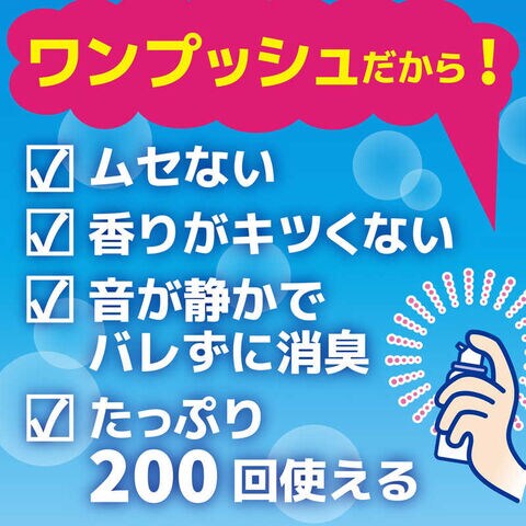 1プッシュですばやくいきわたる!…ミクロの消臭粒子がトイレのすみずみまでいきわたり、瞬間消臭