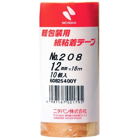 ニチバン 紙粘着テープ 10巻入(幅12mm/長さ18m) ブラウン 208H12