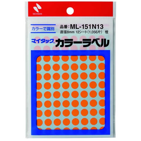 ニチバン マイタック ラベル カラーラベル 〔88片×12シート〕 橙 ML-151N13