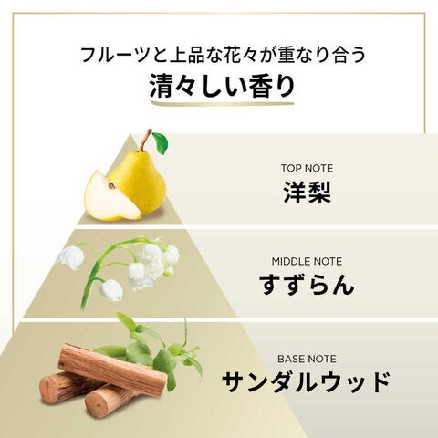 ビタミン・ミネラルたっぷりのフルーツと朝摘みハーブの香りから、スズランフローラルガーデンへと変化する香りでさわやかな気分に。