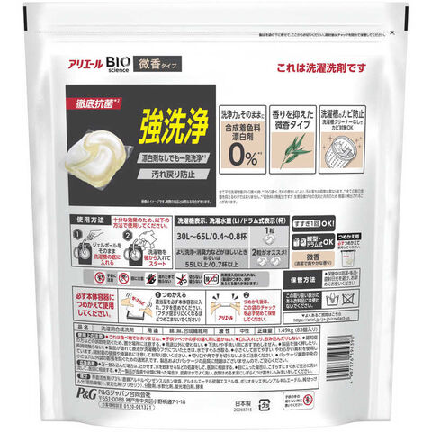 徹底抗菌 *2洗浄力はそのままに合成着色料 漂白剤 0% *3香りを抑えた微香タイプ洗濯槽のカビ防止 洗濯槽クリーナーなしでカビ対策OK強洗浄汚れ戻り防止すすぎ1回OK!
