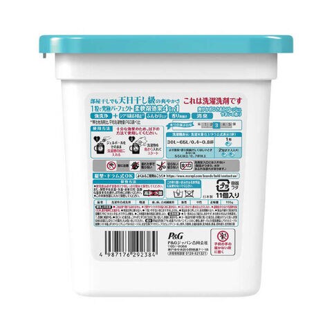 柔軟剤効果 4 in 1強洗浄 洗い上がり輝く白さシワ*1 &黄ばみ防止*1 アイロンがけが楽に!*1ふんわり仕上げ 驚きの柔らかさ香り長続き 着ている間も華やか消臭成分2倍濃縮*2縦型・ドラム式・すすぎ1回OK*1 弊社他洗剤比、平均洗濯物量(P&G調べ)比 *2 当社液体洗剤比 洗濯洗剤