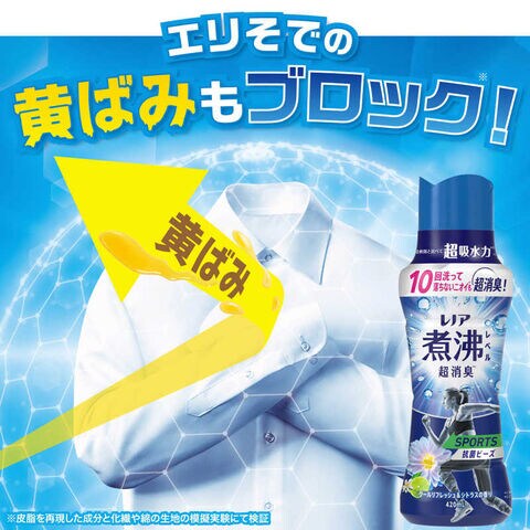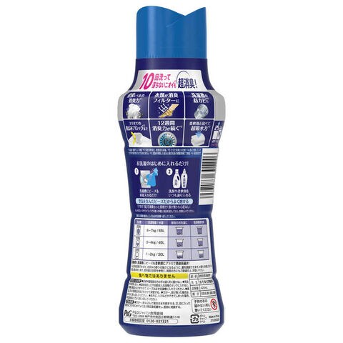 煮沸レベル超消臭*1 10回洗って落ちないニオイ*2 も超消臭!柔軟剤と比べて超吸水力*3 スポーツの汗さらっと吸収*3衣類が消臭フィルターに洗濯槽の防カビ*4 もエリそでの黄ばみブロック*5 まで12週間消臭力が続く*6お洗濯のはじめに入れるだけ!縦型・ドラム式 どちらでもOK