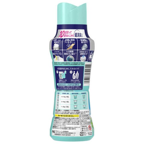 煮沸レベル超消臭*1 10回洗って落ちないニオイ*2 も超消臭!柔軟剤と比べて超吸水力*3 スポーツの汗さらっと吸収*3衣類が消臭フィルターに洗濯槽の防カビ*4 もエリそでの黄ばみブロック*5 まで12週間消臭力が続く*6お洗濯のはじめに入れるだけ!縦型・ドラム式 どちらでもOK
