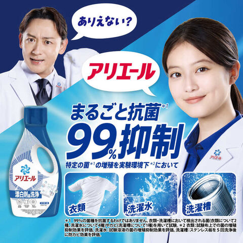 NEW 魔法のような万能洗剤 1本トリプル効果!ストレスなし 洗たく槽防カビ*1つけおきなし 蓄積臭はがす*2石けんなし*3 シミ一発でスッキリ!*4漂白剤なしで黄ばみを一発洗浄*4汗臭 加齢臭 生乾き臭 1本消臭*218時間超抗菌!*510%濃縮!*6 少ない量で同じだけ洗える*1 カビは除去しません *3 石けんの代わりに、本品で前洗いした際に同等のシミを落とす効果が得られます *2 P&G調べ。