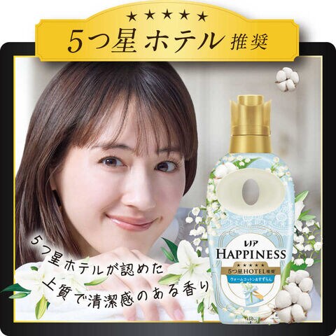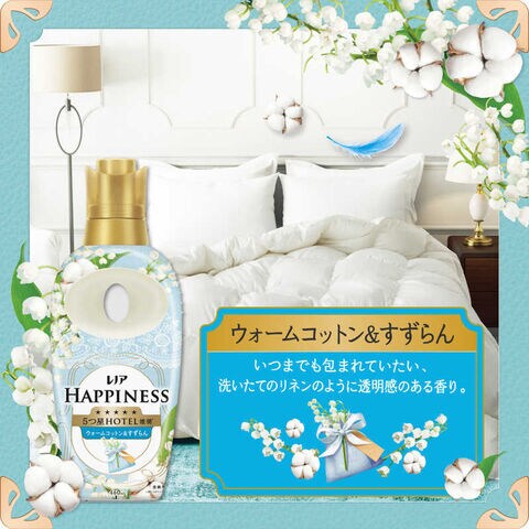 5つ星ホテルの夢ふわタッチウォームコットン&すずらん: いつまでも包まれていたい、洗いたてのリネンのように透明感ある香り。汗をかいても防臭部屋干しOK*1赤ちゃん用衣類もやわらかく静電気を抑制*詳しくはウェブへ