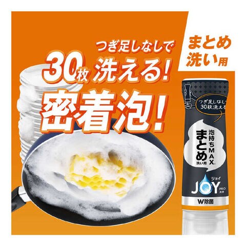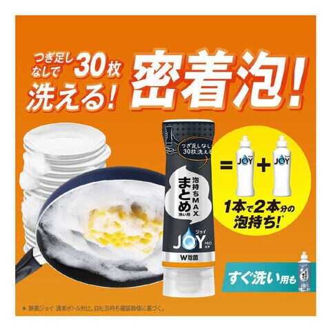 つぎ足しなし*1でも超洗浄泡が最後まで※!強力洗浄最長泡持ち※つぎ足し不要*1W除菌清潔でさわやかな香り1プッシュで一気にお皿30枚洗える!※現行ジョイ製品内。