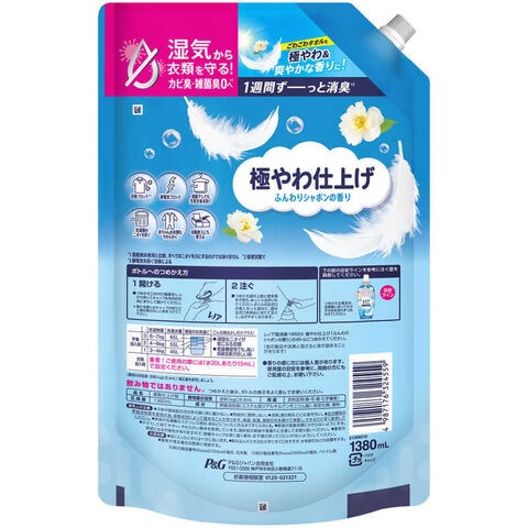 柔軟成分165%に増量*1 1週間ずーっと消臭*2 花粉ブロック*3 静電気ブロック部屋干しでも生乾き臭を防ぐ洗濯槽のニオイを防ぐ赤ちゃんの衣類もやわらかく