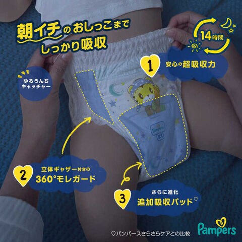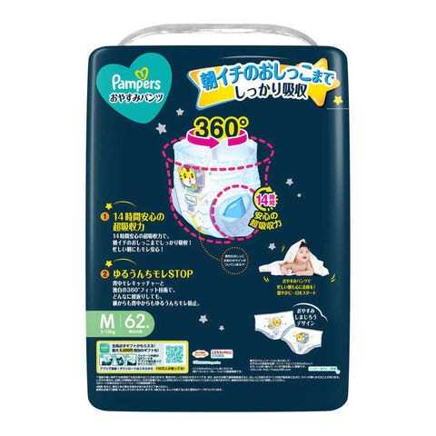 P&G (ケース販売)Pampers(パンパース) おやすみパンツ ウルトラジャンボM(5-12kg)62枚×3個 PMオヤスパンツUJMCS
