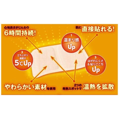 ●発熱シートは、2つの発熱スポットで広い範囲を温め、柔らかな貼り心地でからだにフィットします。