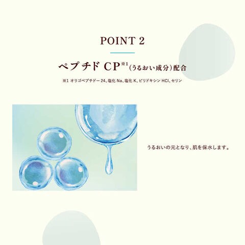仕様1:【成分2】ジヒドロキシリグノセロイルフィトスフィンゴシン、コレステロール、ベヘン酸、塩化Na、塩化K、ピリドキシンHCl、セリン、オリゴペプチド-24、ジメチコン、セタノール、ステアリルアルコール、トコフェロール、カルボマー、EDTA-2Na、TEA、セテアレス-25、