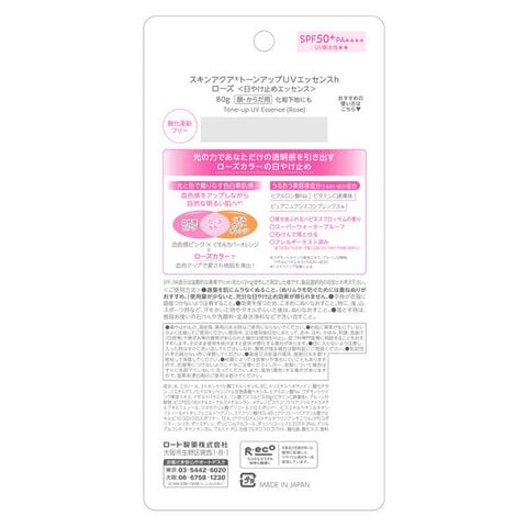 ロート製薬 スキンアクア (SKIN AQUA) トーンアップ UVエッセンスローズ (80g) SPF50+/PA++++ ローズカラー