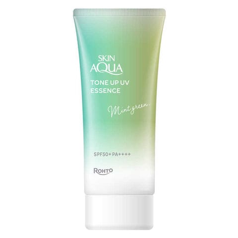 「スキンアクアトーンアップUVエッセンスミントグリーン」は、UVカットしながら、赤みを抑えられる*ミントグリーンカラーの顔・からだ用日やけ止め。