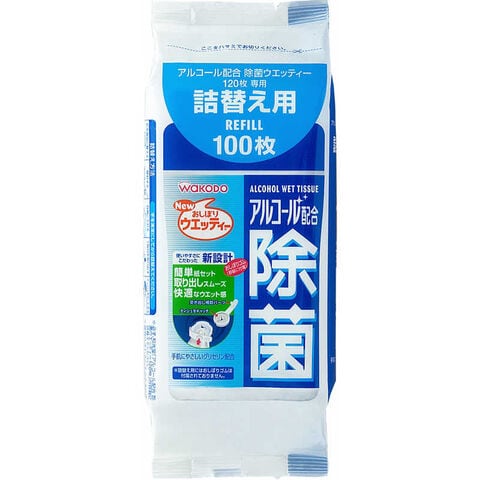 アサヒグループ食品 WAKODO アルコール配合 除菌ウエッティー つめかえ用 100枚 おしぼりウエッティー