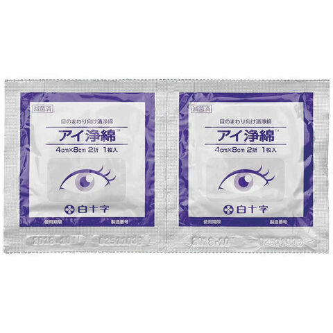 ●清潔な1枚滅菌済包装の目の周り向け清浄綿。