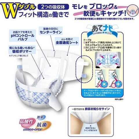 PUサルバ 安心Wフィット 高吸収テープ M」は、2つの吸収体によるWフィット構造の働きで、モレをブロックし軟便もキャッチする、テープ止めタイプの介護用おむつ Mサイズです。